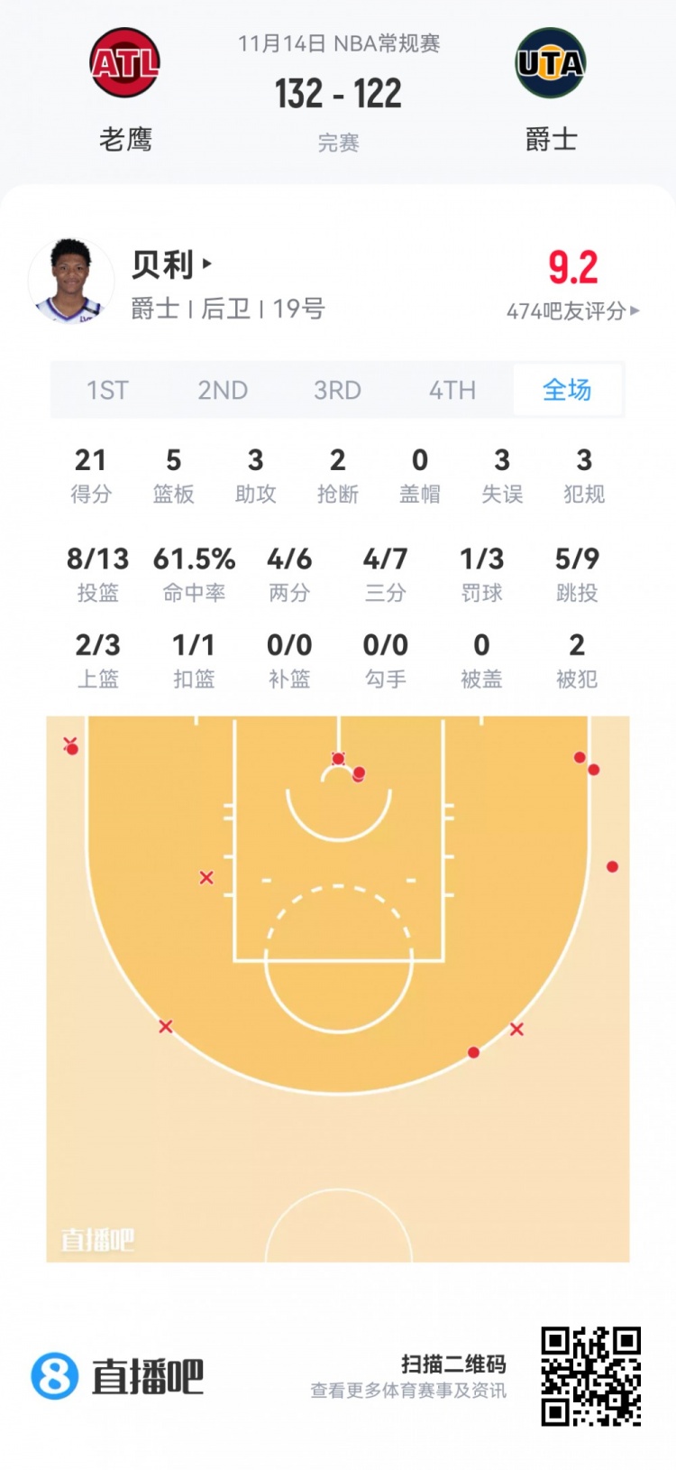 2025-11-12 13:17:572025年11月12日 爵士8人上双送步行者5连败 马卡35分 5号秀贝利20分 西卡27分